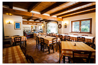 Serviamo esclusivamente i prodotti nostrani come pasta all'uovo fatta giornalmente in casa, salumi caserecci di maiale, agnello, pollo, coniglio, verdure, sott'olio dell'orto, dolci fatti in casa, amari e liquori.